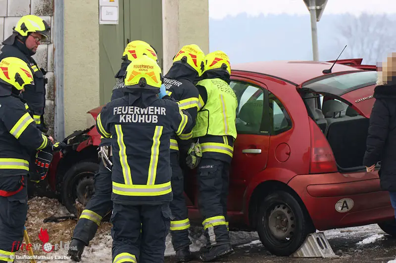 Im Kreuzungsbereich der L561 Bad Haller Straße, Oberrohr, dem Güterweg Oberrohr-Haid und Oberrohr, im Gemeindegebiet von Kremsmünster, kollidierten aus noch unbekannter Ursache ein Räumfahrzeug und ein Pkw. Nach der Kollision krachten beide Fahrzeuge gegen eine Trafostation.