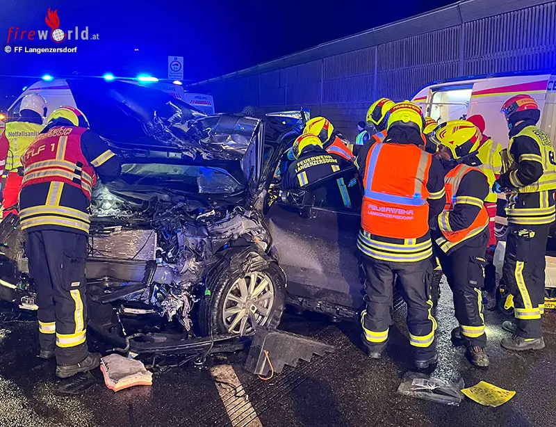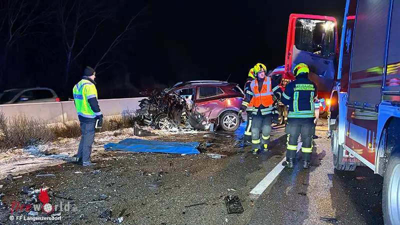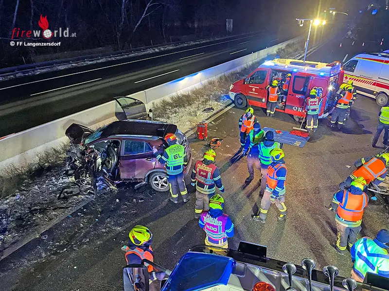 LANGENZERSDORF (NÖ): Gegen Ende der Neujahrs-Punschstandes der Feuerwehr Langenzersdorf kam es am Samstag, 10. Jänner 2026, zu einem folgenschweren Verkehrsunfall auf der A22 Donauuferautobahn. Gemeldet wurde ein Frontalzusammenstoß nach einem Geisterfahrerunfall mit zumindest einer eingeklemmten Person.