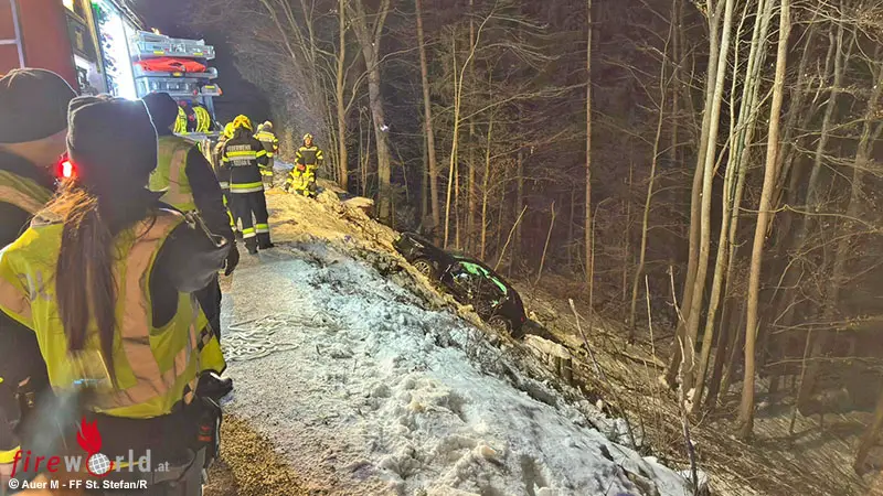 ST. STEFAN IM ROSENTAL (STMK): Am 12. Jänner 2026 wurden die FF St. Stefan im Rosental, FF Wetzelsdorf und FF Aschau um 22:28 Uhr mittels Sirenenalarm zu einem T10 – Verkehrsunfall mit eingeklemmter Person am Hametbergweg alarmiert.
