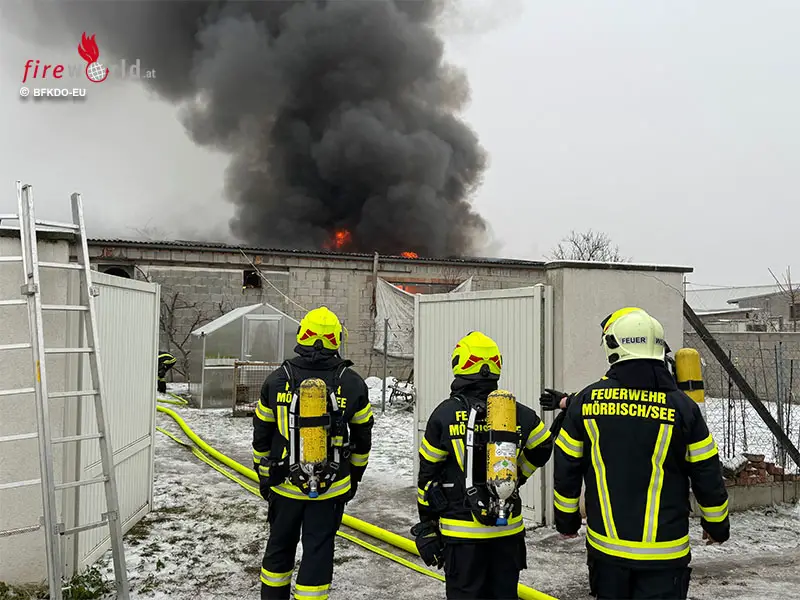 MÖRBISCH (BGLD): Am 16. Jänner 2026 wurden um 10:30 Uhr die Feuerwehren Mörbisch, Rust und Eisenstadt zu einem B3-Wirtschaftsgebäudebrand in Mörbisch alarmiert. Insgesamt standen 12 Fahrzeuge mit rund 70 Feuerwehrmitgliedern im Einsatz.