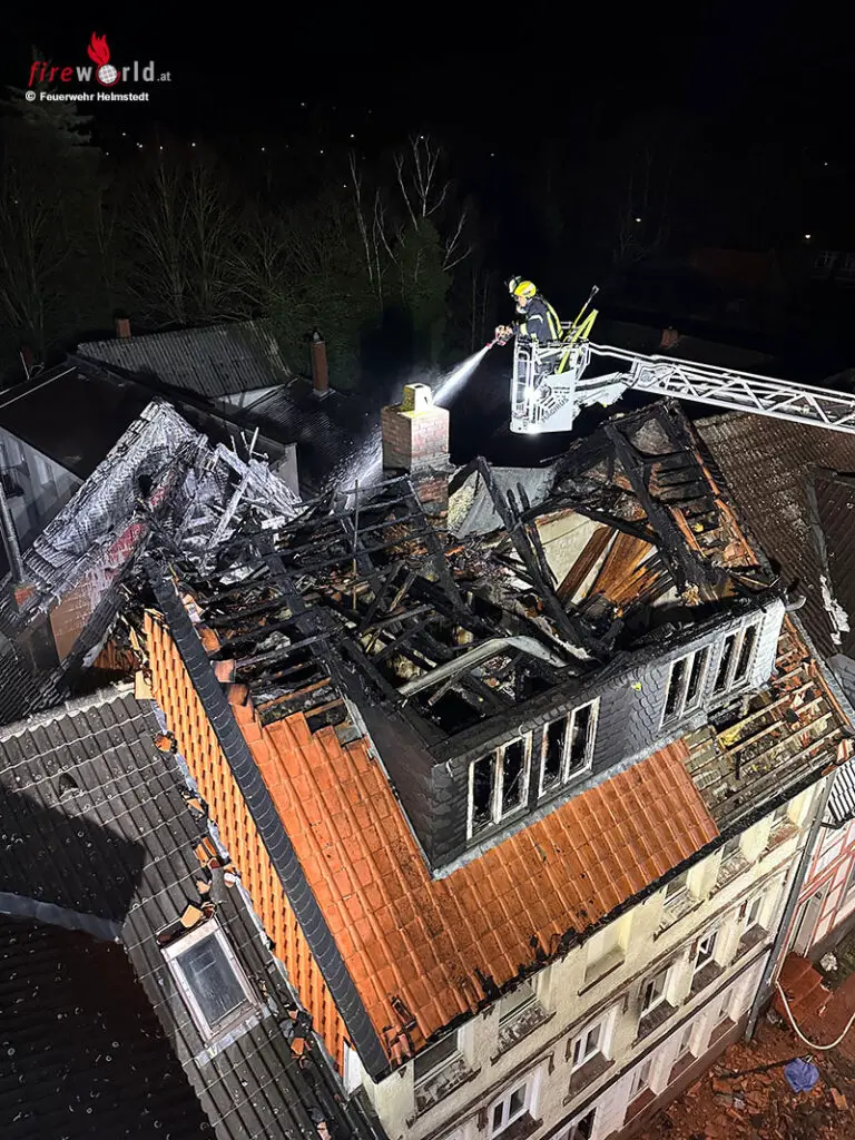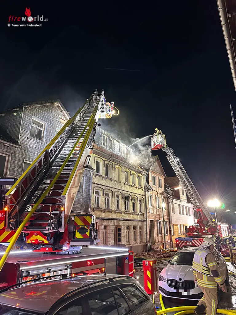 D: Mehrere Personenrettungen, vier tote Katzen, doppelter Drehleiter- sowie Kraneinsatz bei Feuer in Helmstedt