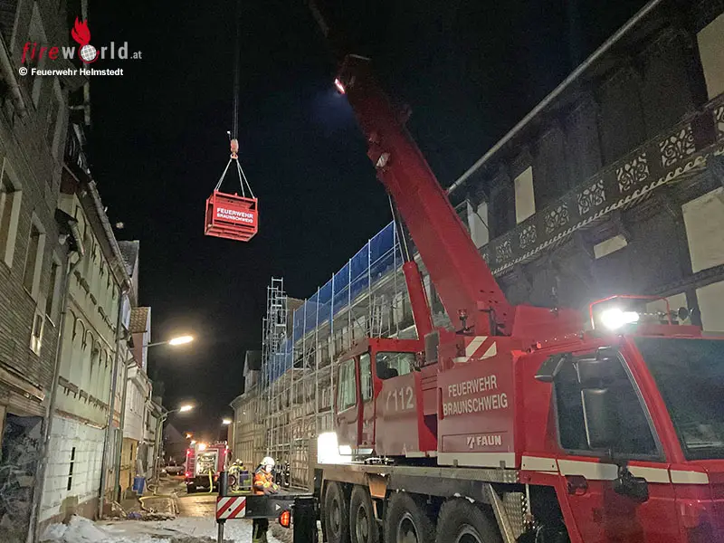 Da nicht alle Glutnester mittels Drehleiter erreicht werden konnten, wurde der Feuerwehrkran der Berufsfeuerwehr Braunschweig nachgefordert. Dieser unterstütze die Nachlöscharbeiten. Abschließend wurde durch das THW das Gebäude gegen unbefugtes Betreten gesichert. Das Brandobjekt ist bis auf weiteres unbewohnbar. Die Bewohner und direkten Nachbarn wurden durch die Stadtverwaltung in einem Hotel sowie bei Freunden untergebracht.