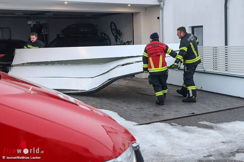 Ein Pkw fuhr in einer Hauseinfahrt im Welser Stadtteil Puchberg unbeabsichtigt gegen ein geschlossenes Garagentor, das bei dem Anprall aus den Führungsschienen gedrückt wurde. Die Feuerwehr wurde zum Sicherungseinsatz alarmiert. Die Teile des Sektionaltores konnten von der Feuerwehr vorsichtig demontiert werden, dass an den dahinter abgestellten Autos keine beziehungsweise keine weitere Schäden entstanden sind.