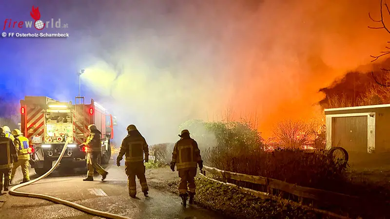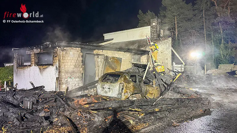 OSTERHOLZ-SCHARMBECK (DEUTSCHLAND): Die Feuerwehren Heilshorn und Garlstedt wurden am 17. Jänner 2026 um 22:07 Uhr mit dem Stichwort „Garagenbrand“ in den Sandbergweg nach Heilshorn alarmiert. Bei Eintreffen der ersten Kräfte stand ein Carport, der unmittelbar an ein Wohnhaus grenzte, im Vollbrand.