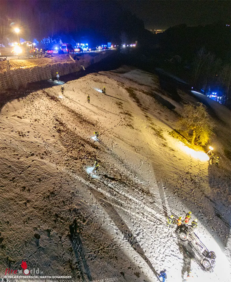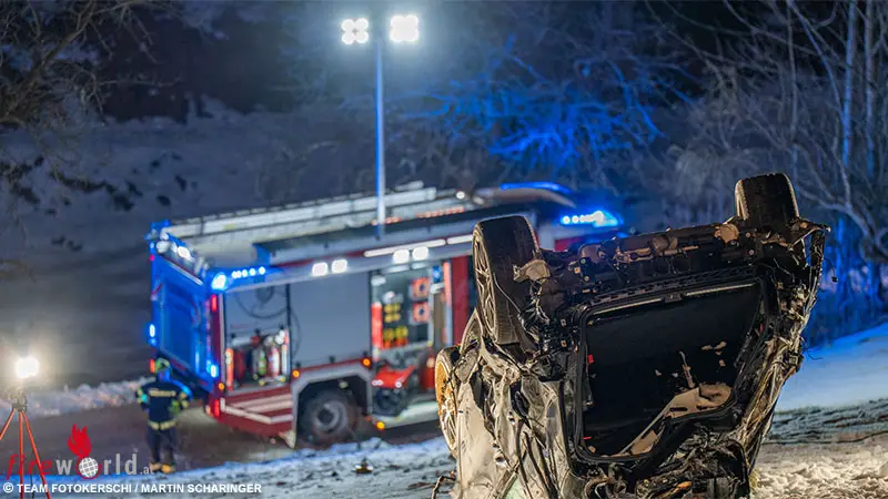 KIRCHSCHLAG (OÖ): Gegen 19:00 Uhr wurden die Freiwilligen Feuerwehren Hellmonsödt, Kirchschlag bei Linz und Kronabittedt am Sonntag, dem 18. Jänner 2026, zu einem schweren Verkehrsunfall in den Haselgraben auf Höhe des sogenannten „Strichs“ alarmiert.