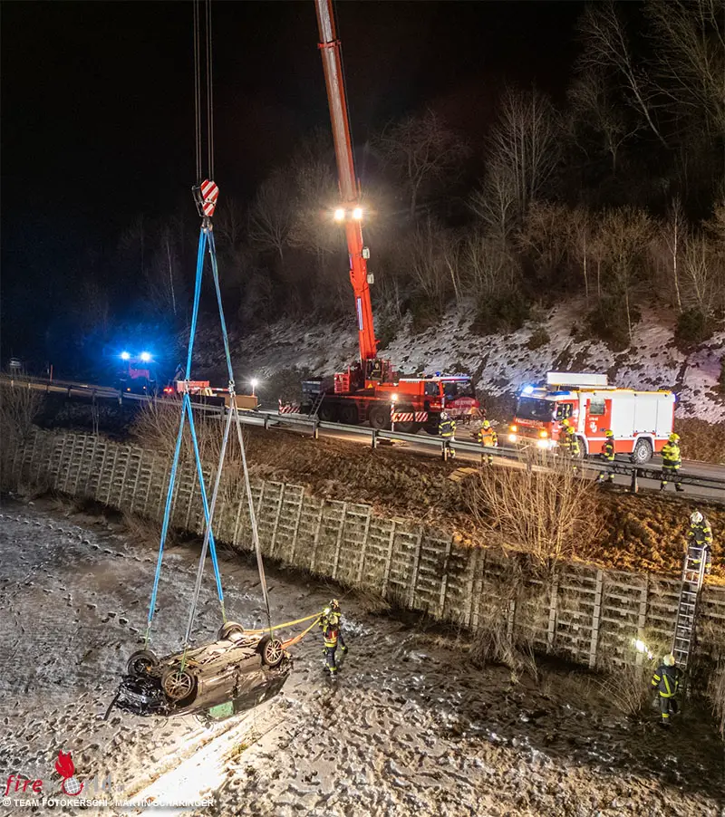 Für die Bergung des verunfallten Fahrzeugs wurde der Kran der Freiwilligen Feuerwehr Bad Leonfelden nachalarmiert. Zunächst wurde der Pkw mittels Seilwinde näher an die B126 herangezogen, ehe die endgültige Bergung durch den Feuerwehrkran durchgeführt wurde. Während der gesamten Dauer des Einsatzes war die B126 vollständig gesperrt.