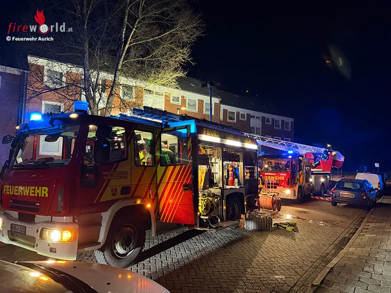 Nachdem sie in der Folge einen Notruf abgesetzt hatten, wurde die Feuerwehr Aurich gegen 18:45 Uhr zu der gemeldeten Adresse alarmiert. Atemschutzgeräteträger gingen umgehend in die stark verrauchten Räumlichkeiten vor. Parallel ist die Drehleiter vor dem bereits geräumten Gebäude in Stellung gebracht worden.