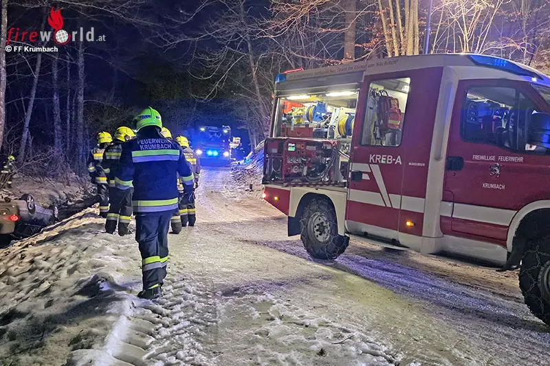 KRUMBACH (NÖ): Am 19. Jänner 2026 wurde die Freiwillige Feuerwehr Krumbach um 22:45 Uhr zu einem Verkehrsunfall in den Ortsteil Untertiefenbach alarmiert.