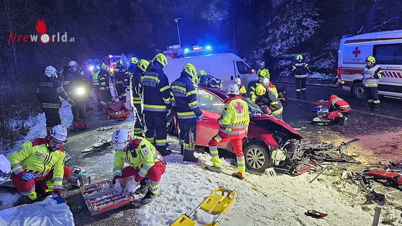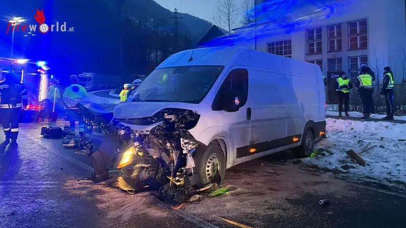 KAPFENBERG (STMK): Kurz vor 16:30 Uhr des 20. Jänner 2026 kam es auf der B 20 in Kapfenberg zu einem schweren Zusammenstoß zwischen einem Pkw und einem Transporter.
