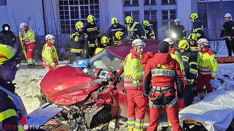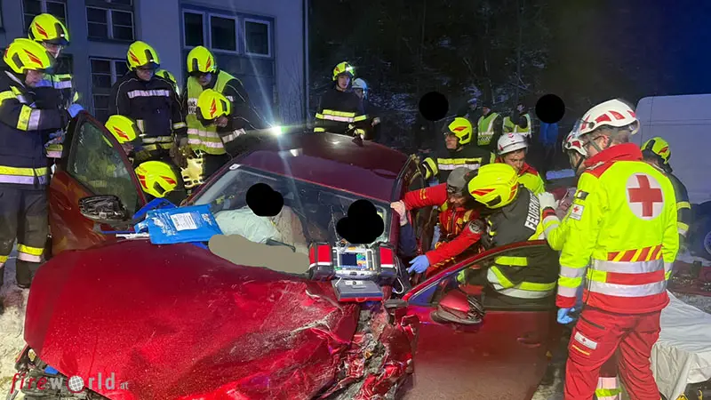Aufgrund der Wucht des Aufpralles wurden beide Insassen im Pkw eingeklemmt und unbestimmten Grades verletzt. Die alarmierten Einsatzkräfte der Feuerwehr Kapfenberg-Stadt und des Roten Kreuzes waren mit einem Großaufgebot an Personal an der Einsatzstelle.
