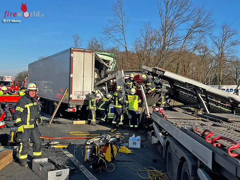 D: Eingeklemmter Lenker nach Lkw-Auffahrunfall auf der Autobahn bei Werne