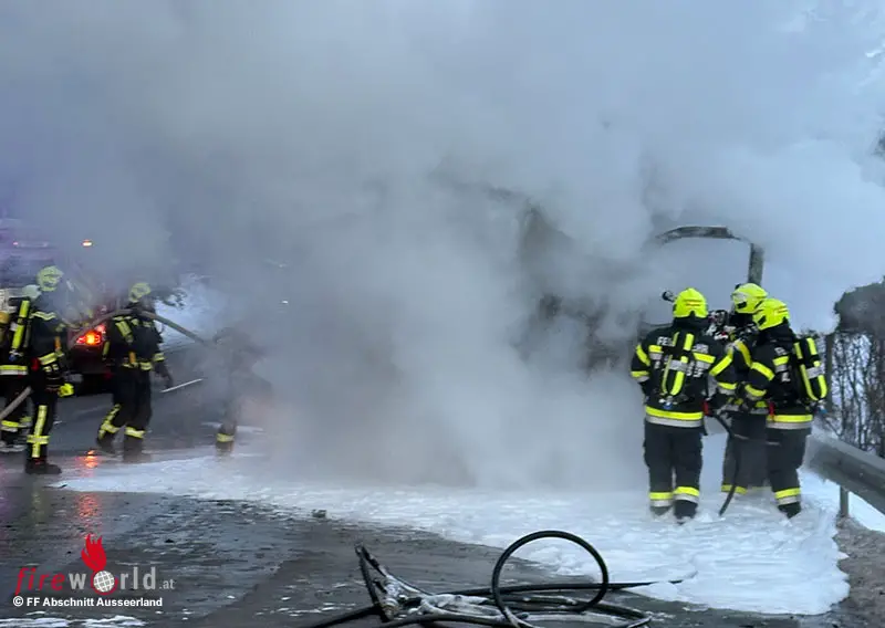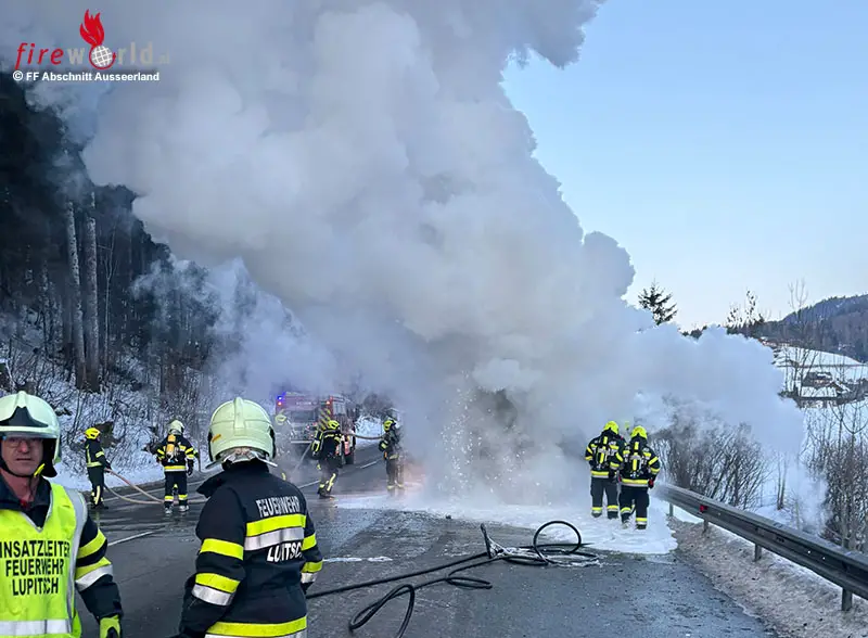 ALTAUSSEE (STMK): Am 22. Jänner 2026 um 07.30 Uhr wurden die Feuerwehren Lupitsch (als einsatzleitende Feuerwehr), Altaussee, Bad Aussee und Reitern zu einem Lkw-Brand auf die Pötschenstraße B 145 alarmiert.