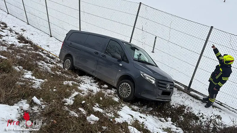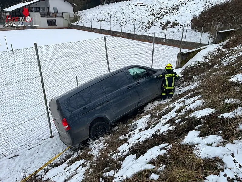 Der Lieferwagen rutschte rund 40 Meter über die vereiste Fahrbahn, drehte sich dabei um 180 Grad und stürzte anschließend einen Abhang hinunter, wo schließlich eine Mauer das Fahrzeug zum Stillstand brachte. Der Lenker hatte das Fahrzeug glücklicherweise noch vor dem Unfallhergang verlassen können. Feuerwehrmitglied Raphael Faffelberger leitete umgehend die Rettungskette ein und leistete Erste Hilfe. Der Fahrer wurde mit leichten Verletzungen ins Krankenhaus gebracht.
