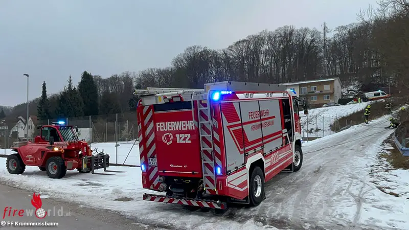 Nö: Schwierige Fahrzeugbergung nach eisiger Fahrt in Krummnussbaum