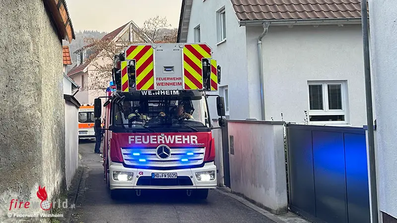 WEINHEIM (DEUTSCHLAND): Am Samstagmorgen, 24. Jänner 2026, gegen 8:30 Uhr wurde die Feuerwehr Weinheim mit den Abteilungen Stadt sowie Lützelsachsen-Hohensachsen zu einem Kaminbrand in die Rosengasse alarmiert.
