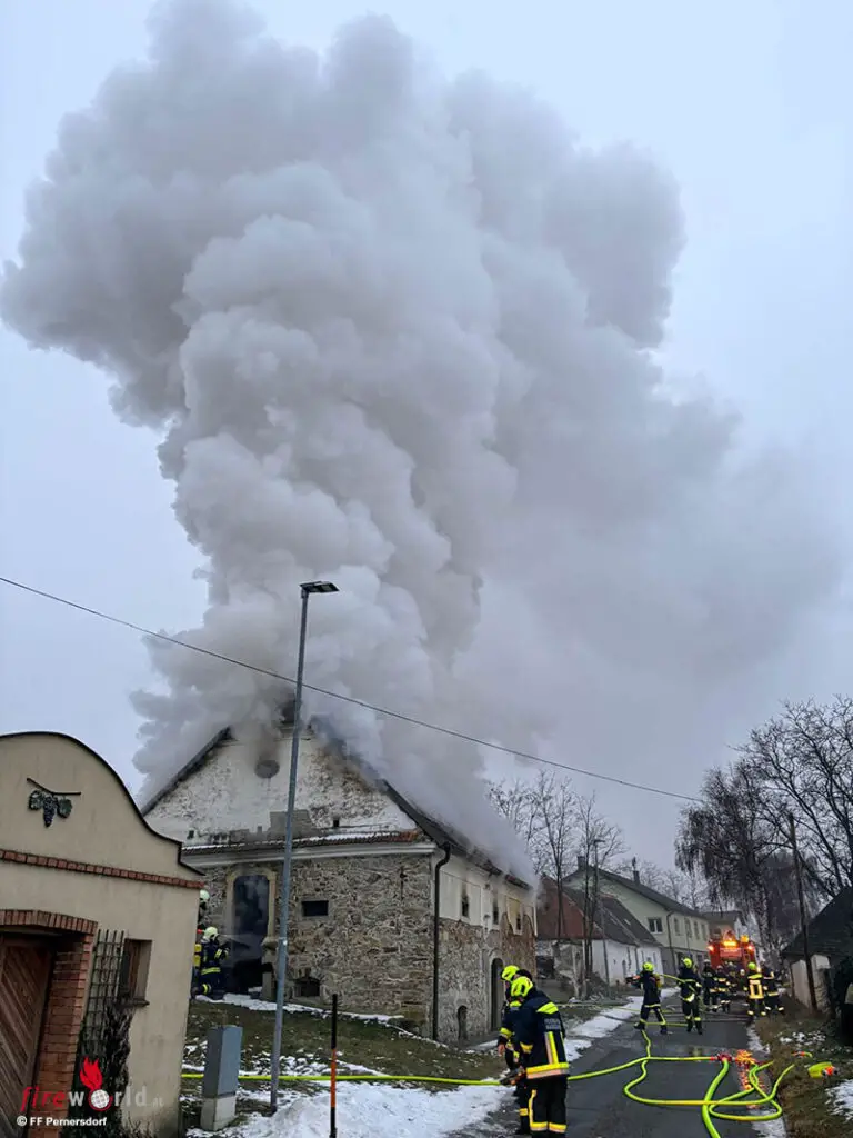 PERNERSDORF (NÖ): Kurz vor 16:00 Uhr wurden die Feuerwehren Pernersdorf, Haugsdorf, Pfaffendorf-Karlsdorf und Peigarten zu einem Brand eines Weinkellers bzw. Presshauses in Pernersdorf (Bezirk Hollabrunn) alarmiert.