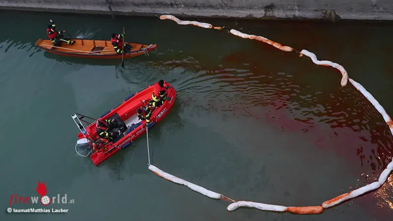 Die Einsatzkräfte der Feuerwehr wurden am Samstagvormittag mit dem Einsatzstichwort „Ölaustritt Gewässer“ an die Traun alarmiert. Vor Ort stellte sich dann heraus, dass im Kraftwerksbereich der Nachbargemeinde – im Gemeindegebiet von Lambach – unter einem Wehrfeld eine stark rote Färbung der Traun wahrzunehmen war, was auf einen größeren Ölaustritt hinwies. Kräfte der Polizei nahmen Wasserproben, zudem wurden Behördenvertreter an den Einsatzort geholt.