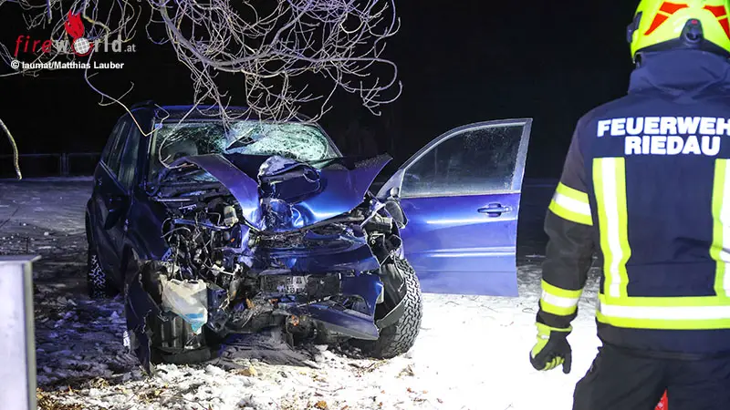 RIEDAU (OÖ): Ein schwerer Verkehrsunfall hat sich Samstagabend, 24. Jänner 2026, auf der L1224 Pramtalstraße in Riedau (Bezirk Schärding) ereignet. Eine Person musste von den Einsatzkräften aus dem verunfallten Pkw befreit werden.