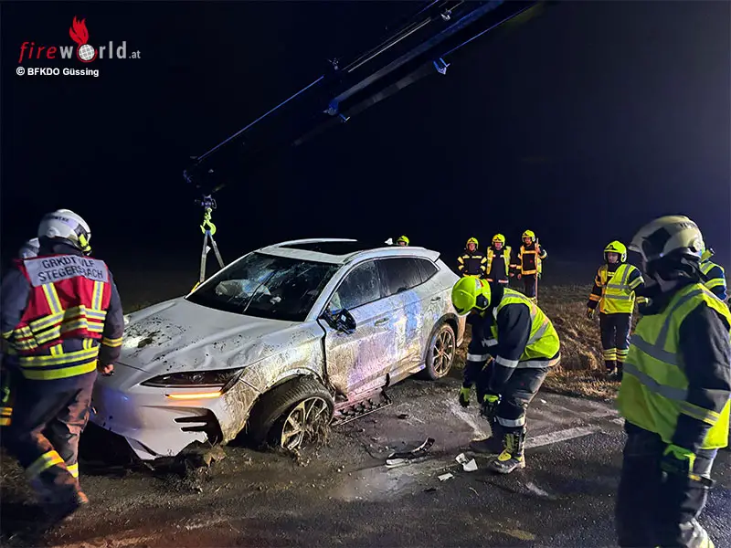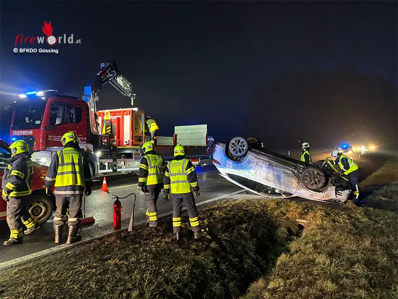 RAUCHWART (BGLD): Auf der B57 bei Rauchwart ereignete sich am Dienstagabend, 27. Jänner 2026, ein Verkehrsunfall, bei dem sich ein Pkw überschlug und schließlich auf dem Dach liegen blieb. Der Lenker des Fahrzeugs wurde dabei unbestimmten Grades verletzt.