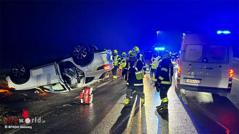 RAUCHWART (BGLD): Auf der B57 bei Rauchwart ereignete sich am Dienstagabend, 27. Jänner 2026, ein Verkehrsunfall, bei dem sich ein Pkw überschlug und schließlich auf dem Dach liegen blieb. Der Lenker des Fahrzeugs wurde dabei unbestimmten Grades verletzt.
