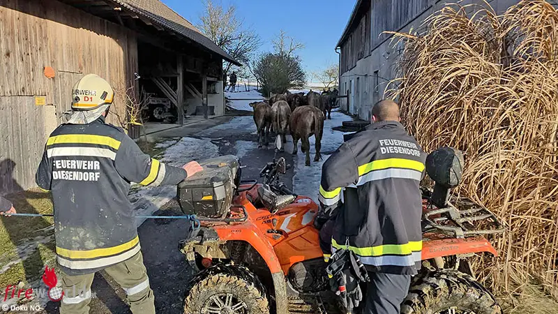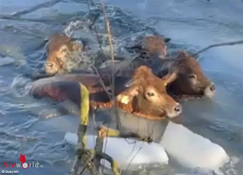 ST. LEONHARD AM FORST (NÖ): Die Feuerwehr Diesendorf wurde durch die Bereichsalarmzentrale Melk am frühen Nachmittag des 27. Jänner 2026 zu einer Tierrettung im Gemeindegebiet von St. Leonhard am Forst im Bezirk Melk alarmiert. Aus bislang ungeklärter Ursache waren mehrere Rinder bei einem Löschteich durch die Eisdecke eingebrochen.