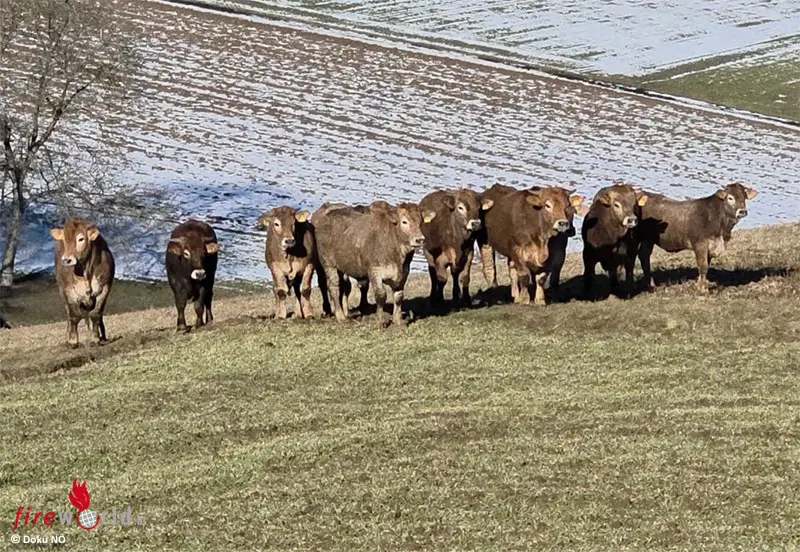 Der zuständige Landwirt erhielt bei der Suche nach den Tieren sowie beim Einfangen der freilaufenden Rinder Unterstützung durch mehrere Landwirte aus der Umgebung sowie durch die Feuerwehr Diesendorf.