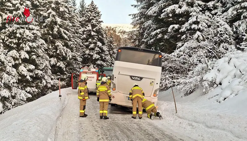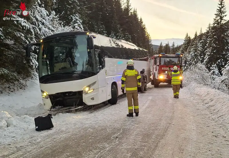 THOMATAL (SBG): Am 27. Jänner 2026 wurde die Feuerwehr Thomatal um 16:36 Uhr zu einer Fahrzeugbergung mit dem Zusatztext „Reisebus steckt fest“ auf die L267 (Bundschuh Landesstraße) alarmiert.
