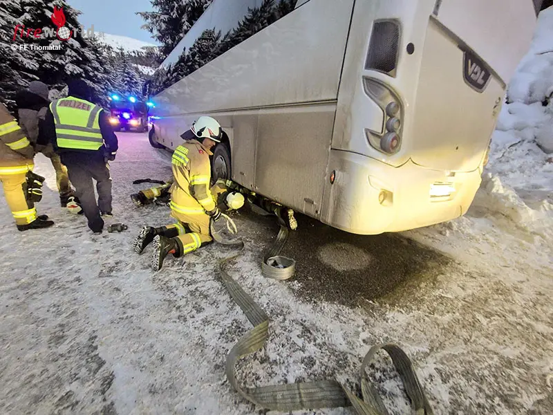 Der Bus wurde zunächst durch die Feuerwehr Thomatal gesichert. Gleichzeitig wurde das schwere Rüstfahrzeug der Feuerwehr Tamsweg zur Unterstützung an die Einsatzstelle nachalarmiert. Die Fahrgäste wurden von der Feuerwehr Thomatal aus dem Bus evakuiert und in ein nahegelegenes Hotel gebracht.