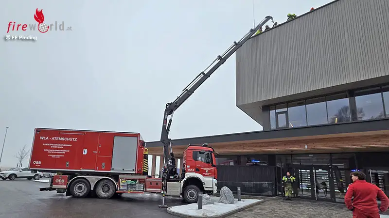PREDING (STMK): Am Donnerstag, dem 29. Jänner 2026, kam es in einem Industriebetrieb in Preding zu einem medizinischen Notfall auf dem Dach eines Gebäudes. Die Alarmierung der Feuerwehr Preding erfolgte um 11:38 Uhr mittels Sirene.