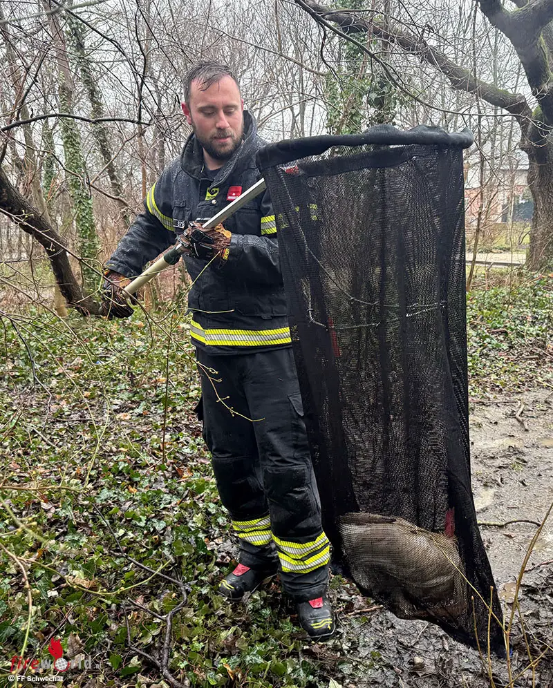 SCHWECHAT (NÖ): Am Vormittag des 29. Jänner 2026 wurde die Freiwillige Feuerwehr Schwechat zu einem eher ungewöhnlichen Einsatz gerufen. Die Polizei alarmierte mit der Bitte, einen herrenlosen Hahn einzufangen, der beschlossen hatte, den Felmayergarten zu seinem neuen Revier zu erklären.