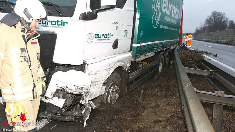 Vbg: Lkw kollidiert wegen bewusstlosem Lenker auf A 14 bei Altach mit Mittelleitschiene