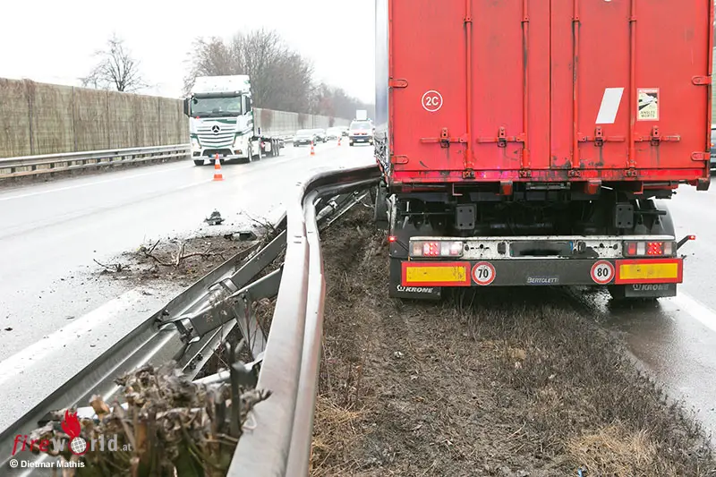 ALTACH (VBG): Am Vormittag des 29. Jänner 2026 kam es auf der A14 Höhe Altach in Richtung Tirol zu einem Verkehrsunfall, bei dem ein Lkw samt Anhänger mehrfach gegen die Mittelleitschiene prallte. Das Fahrzeug kam schließlich auf der Überholspur im Bereich der A14-Abfahrt Altach zum Stehen.