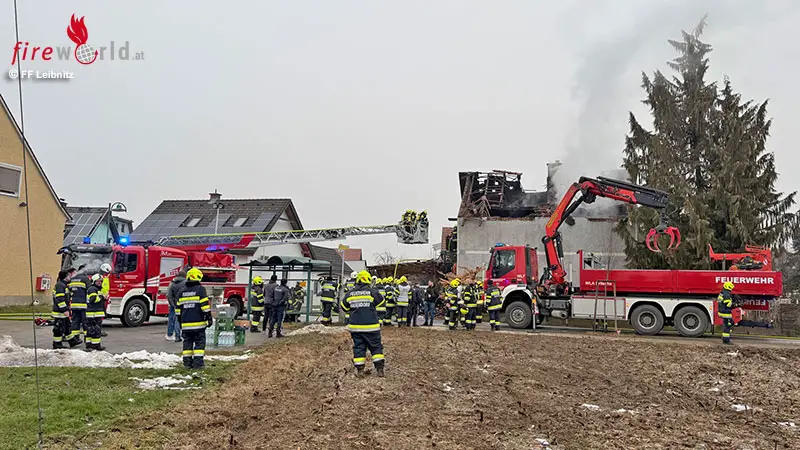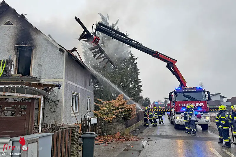 geborgen werden. Nach Rücksprache mit den vor Ort befindlichen Brandermittlern begann das Wechselladerfahrzeug der Feuerwehr Kaindorf an der Sulm mit dem teilweisen Abtragen des Dachstuhls, um verbliebene Glutnester freizulegen und eine weitere Ausbreitung des Brandes zu verhindern. Nach Abschluss der Löscharbeiten stellte die Feuerwehr Leitring eine Brandwache, um das Gebäude weiterhin zu überwachen.