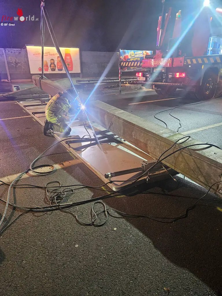 Aufgabe, gemeinsam mit der Holding Graz den Wegweiser zu entfernen. Zu diesem Zweck wurde das SRF mit dem Plasma-Schneider nachalarmiert, um den Wegweiser vor Ort zu zerlegen und in weiterer Folge über die Holding abtransportieren zu können.