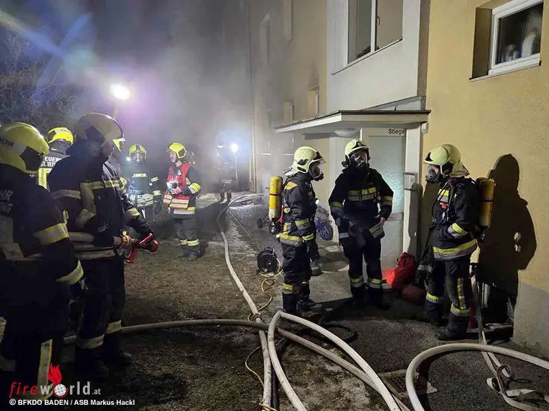 BERNDORF (NÖ): Ein Kellerbrand in einem Wohnblock in Veitsau in Berndorf riss in der Nacht auf Sonntag, 1. Februar 2026, zahlreiche Bewohner aus dem Schlaf und löste einen Großeinsatz mehrerer Feuerwehren aus.