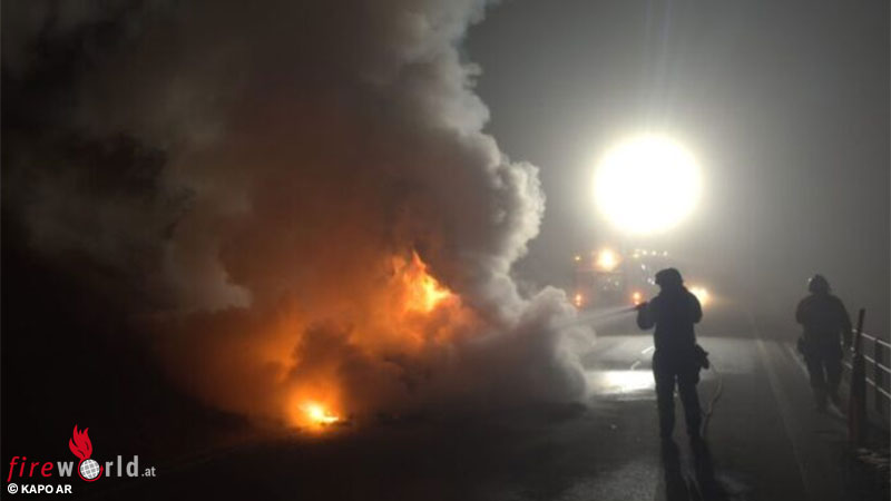 BÜHLER (SCHWEIZ): Am Samstagabend, dem 31. Jänner 2026, geriet in Bühler ein Auto in Brand. Die Feuerwehr löschte den Brand, niemand wurde verletzt.
