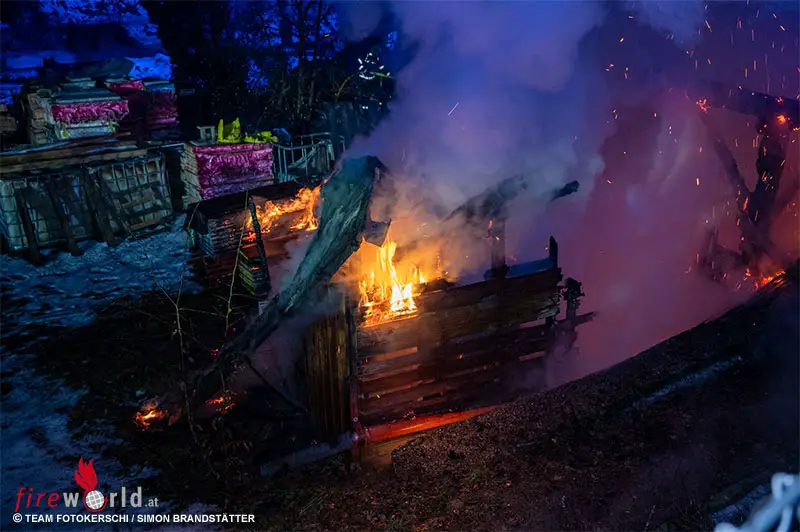 PREGARTEN (OÖ): In der Nacht auf Dienstag, 3. Februar 2026, kam es in Pregarten zu einem Vollbrand einer Gartenhütte neben einem Wohnhaus.