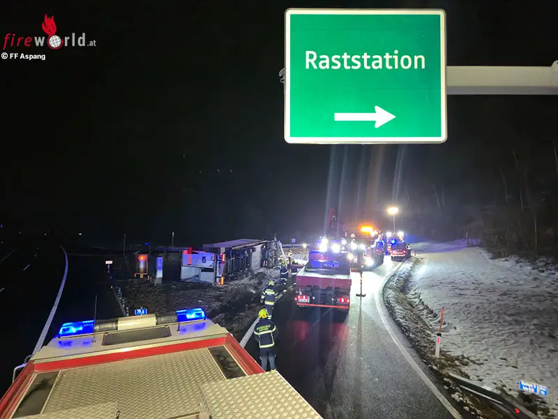 ASPANG | ZÖBERN (NÖ): Um 01:14 Uhr des 4. Februar 2026 wurde die Freiw. Feuerwehr Aspang zu einer Menschenrettung auf die A2 Südautobahn Fahrtrichtung Wien zur Abfahrt Raststation Zöbern alarmiert.