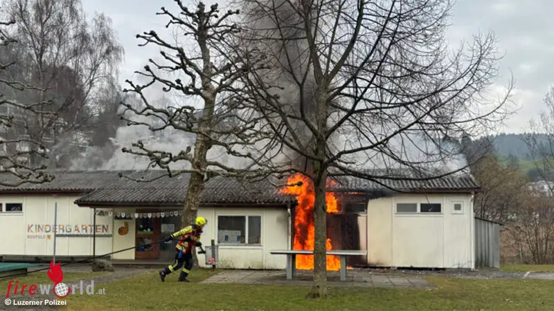 HORW (SCHWEIZ): Am Mittwochnachmittag, dem 4. Februar 2026, brach beim Kindergarten Seefeld in Horw ein Brand aus. Niemand wurde verletzt. Die Luzerner Polizei sucht Zeugen.