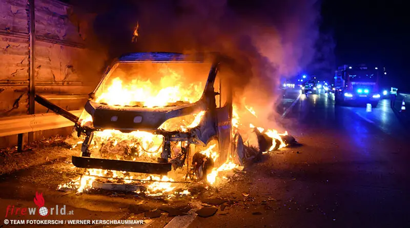 Oö: Pferd beim Brand eines Pferdetransporters auf der A 1 verendet
