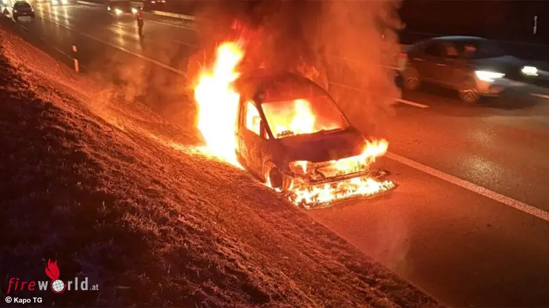 Schweiz: In Vollbrand stehender Pkw auf der A 7 bei Wigoltingen