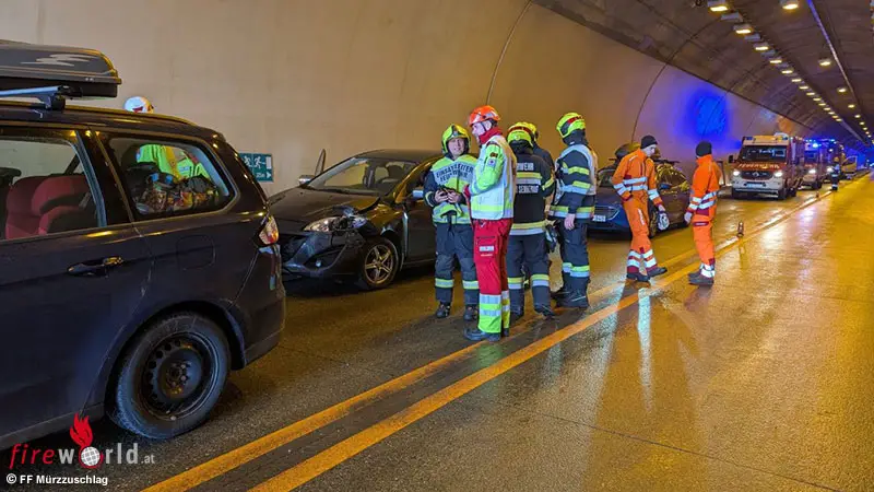 MÜRZZUSCHLAG (STMK): Am Samstag, dem 7. Februar 2026, wurden um 11:51 Uhr laut Sonderalarmplan die Feuerwehren Mürzzuschlag, Spital und Steinhaus zu einem Verkehrsunfall mit drei Fahrzeugen im Ganzsteintunnel auf der S6 Semmeringschnellstraße – Fahrtrichtung St. Michael alarmiert.