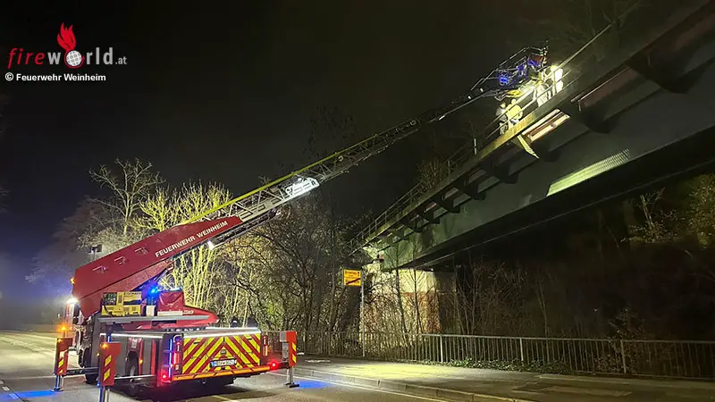Zur sicheren Durchführung der Rettungsmaßnahmen wurde die Bahnstrecke Weinheim-Fürth für den Zugverkehr gesperrt. Zusätzlich sperrte die Polizei die Birkenauer Talstraße in beide Fahrtrichtungen. Die Feuerwehr Weinheim war mit der Abteilung Stadt im Einsatz und brachte die Drehleiter an der Eisenbahnbrücke in Stellung. Über die Drehleiter konnten alle vier Personen sicher aus dem Waldgebiet auf die Straße gerettet werden.