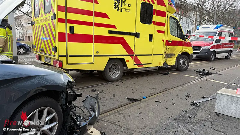 D: Verletzte bei Kollision zwischen einem Pkw und Rettungswagen in Dresden