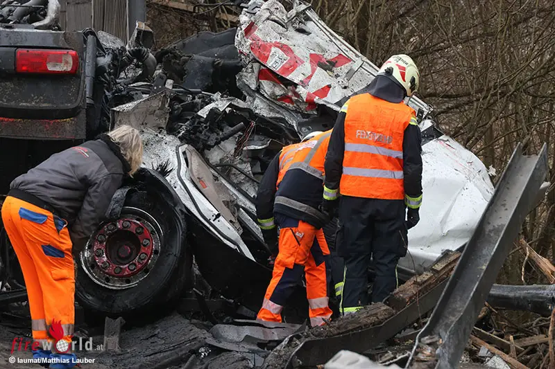 Für die Bergung des schwer beschädigten LKW wurde ein Bergeunternehmen angefordert. Die Einsatzkräfte unterstützten die Bergungsarbeiten, um die Fahrbahn rasch wieder freizumachen. Im Einsatz standen mehrere Fahrzeuge der Berufsfeuerwehr Linz mit entsprechender Mannschaftsstärke, die Freiwilligen Feuerwehren Ebelsberg, Rohrbach, St. Florian, der Rettungsdienst, die Polizei, die Asfinag, die Wasserrechtsbehörde sowie ein Bergeunternehmen.