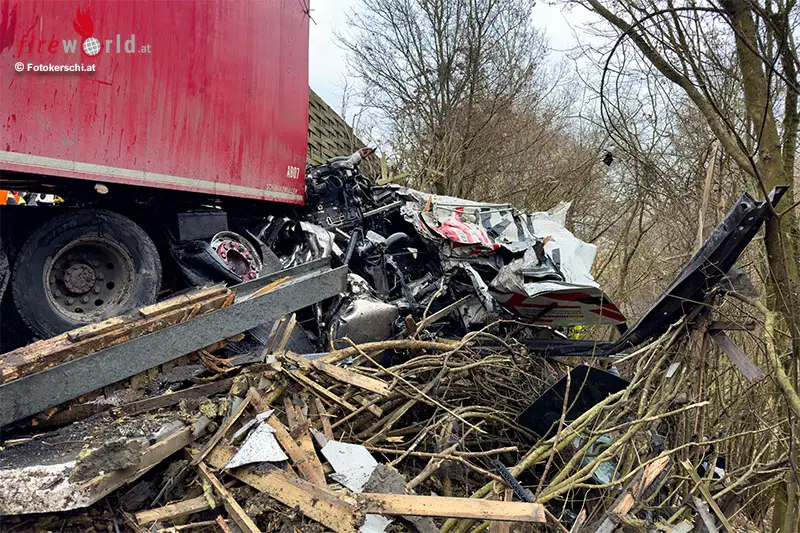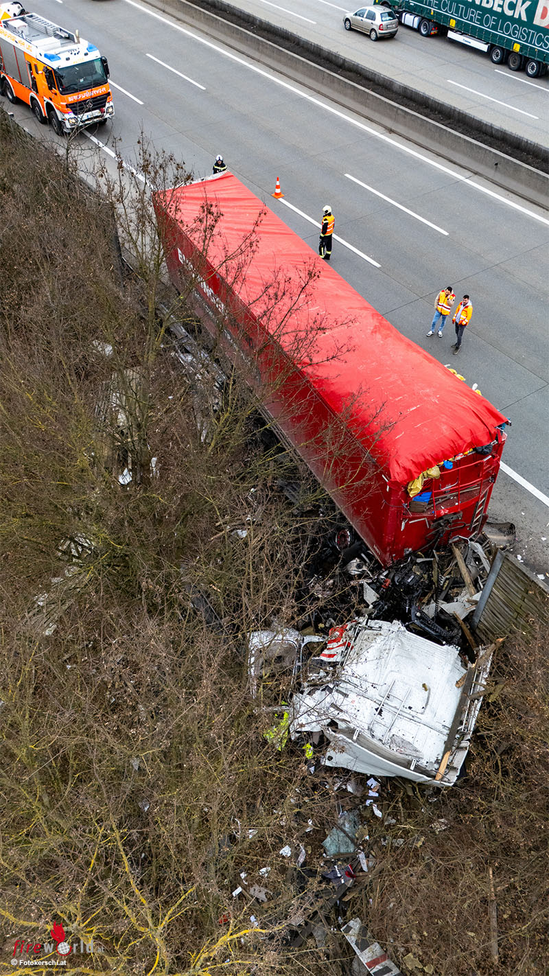 Oö: Führerhaus bei Lkw-Unfall auf A1 bei Linz abgerissen → Lenker aus Fahrzeug geschleudert