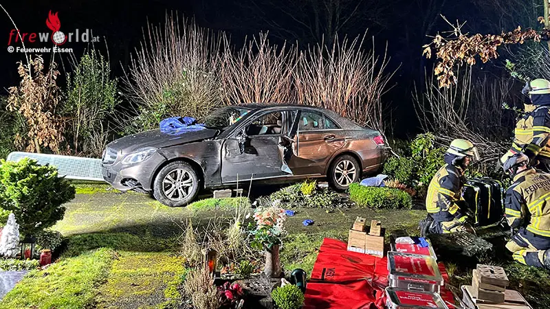 D: Pkw durchbricht in Essen den Friedhofszaun