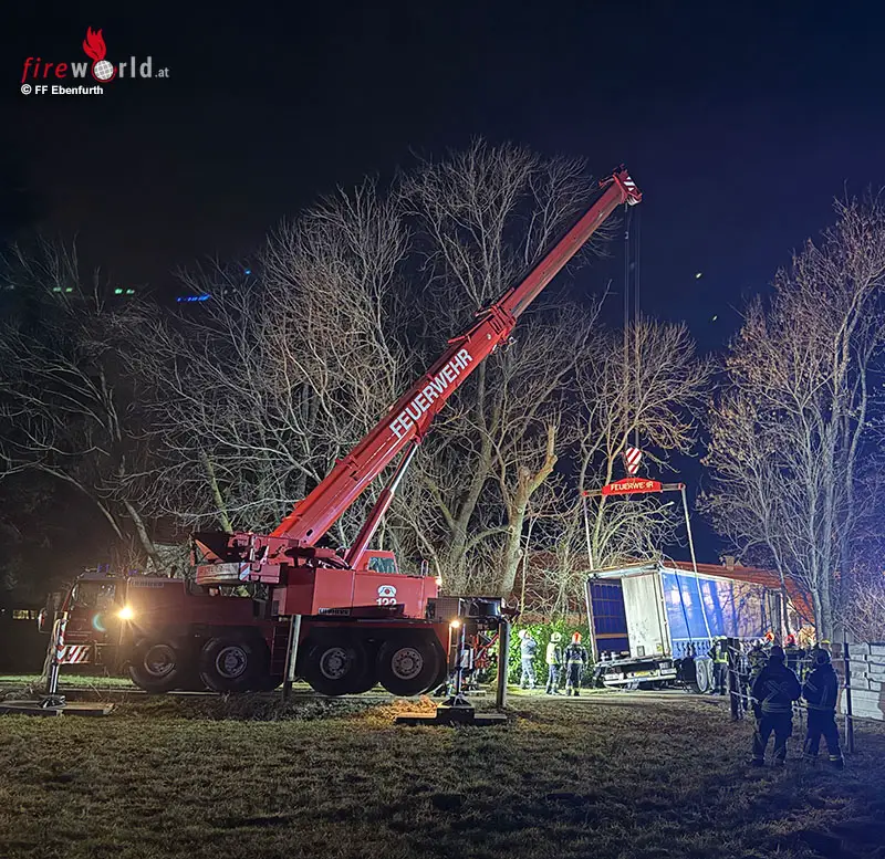 Durch kurze Erkundung durch die herbeigerufene Polizei wurde die Feuerwehr zur Bergung hinzugezogen. Durch den Einsatzleiter der Feuerwehr Ebenfurth war bereits bei der Erkundung klar, dass die Bergung mit eigenen Mittel nicht möglich ist, weshalb das in Wiener Neustadt stationierte Kranfahrzeug nachalarmiert wurde.