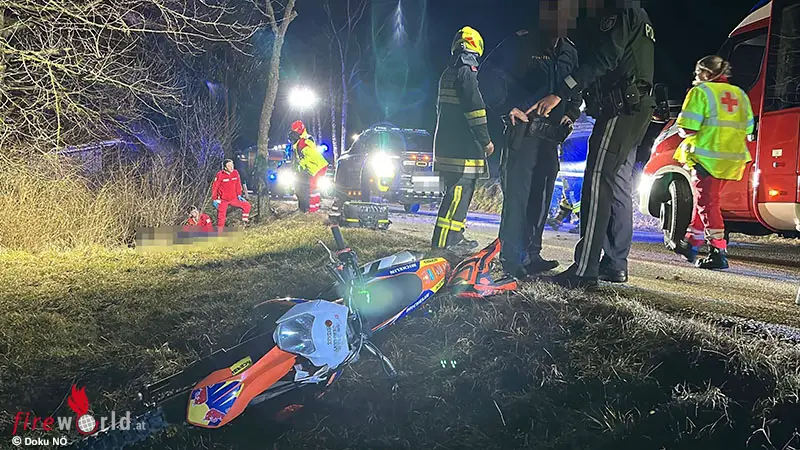 BÖHEIMKIRCHEN (OÖ): Gegen 02:30 Uhr kam es am Samstag, dem 14. Februar 2026, bei Mauterheim in der Gemeinde Böheimkirchen zu einem schweren Motorradunfall.