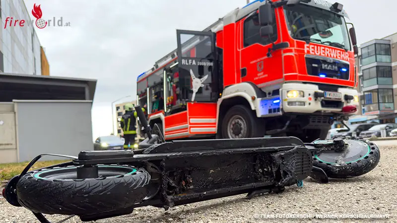 Ein Atemschutztrupp setzte einen CO₂-Löscher zur Brandbekämpfung ein und konnte das Feuer am E-Scooter rasch ablöschen. Parallel wurde vorsorglich eine Löschleitung aufgebaut, die jedoch nicht mehr benötigt wurde. Zur weiteren Sicherung legte die Feuerwehr den beschädigten E-Scooter in einen mit Wasser gefüllten Müllbehälter, um ein mögliches Wiederaufflammen durch den Lithium-Ionen-Akku zu verhindern. Der Einsatz war nach kurzer Zeit beendet.